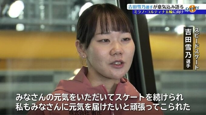 「本当にみなさんのおかげでここまで来れてますし、みなさんの元気をいただいて私もスケートを続けて、私もみなさんに元気を届けたいなという気持ちで頑張ってこれているので、その気持ちをオリンピックでもしっかりみなさんに見せることができるように頑張りたいと思います。応援よろしくお願いします」