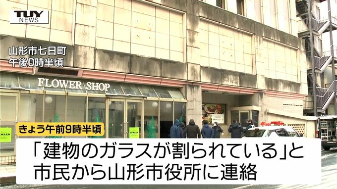 旧大沼山形本店を所有する山形市都市振興公社によりますと、きょう午前9時半頃「建物のガラスが割られている」と、市民から山形市役所に連絡がありました。