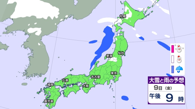また、11日から12日頃にかけて、北日本では大雪や猛ふぶき、吹きだまりによるによる交通障害に警戒し、東日本から西日本では大雪による交通障害に注意・警戒してください。