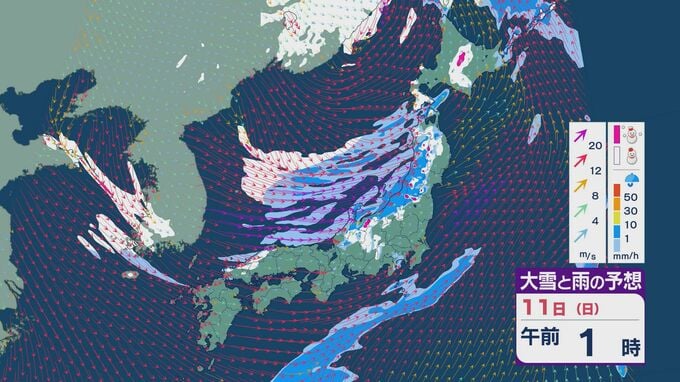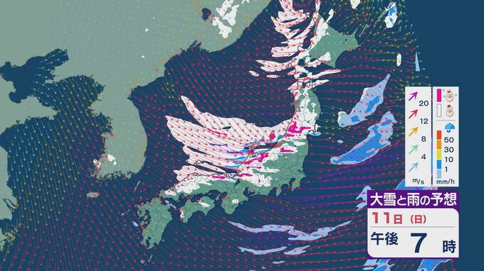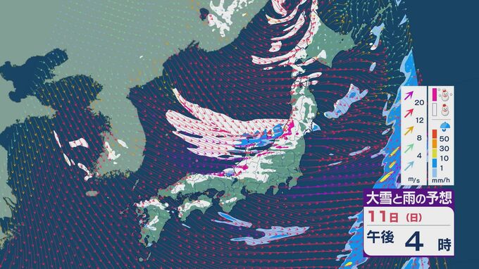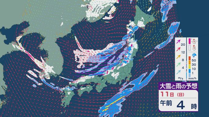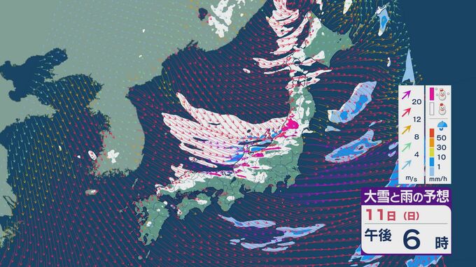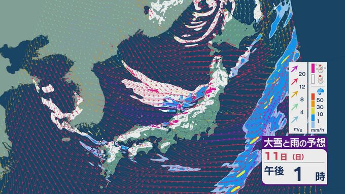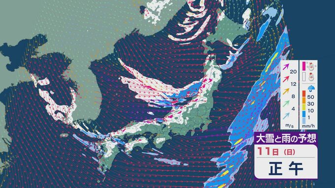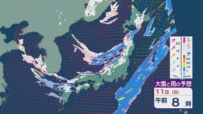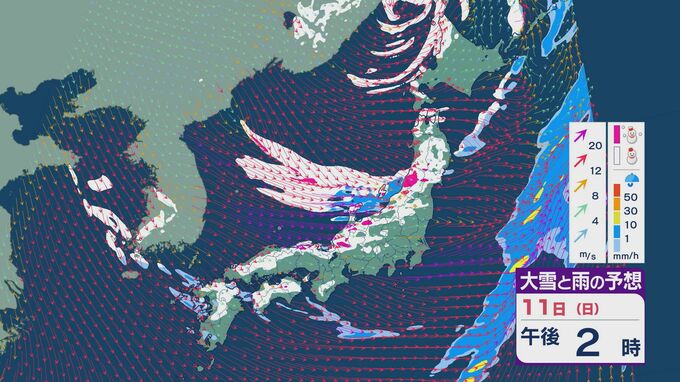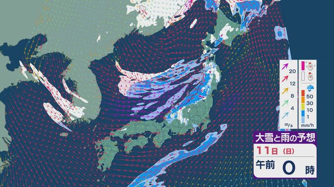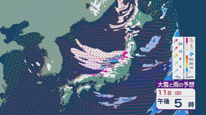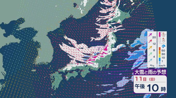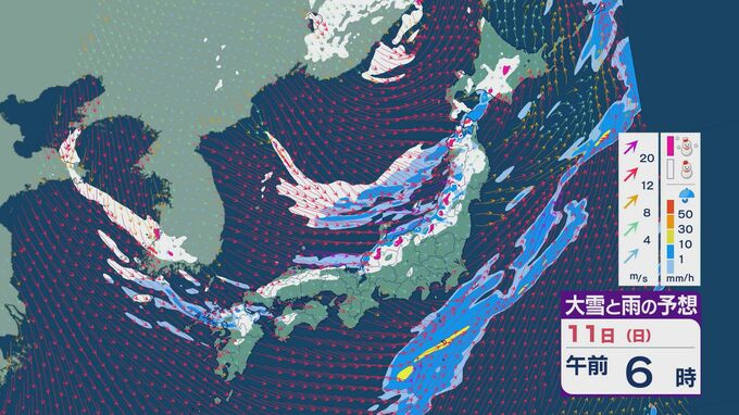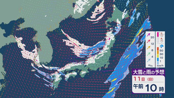 11日の昼過ぎあたりから、JPCZによる雪雲が東北の日本海側や北陸に流れ込みそうで、大雪とともに暴風のおそれがあります。山陰など西日本でも日本海側では雪が降り続くでしょう。