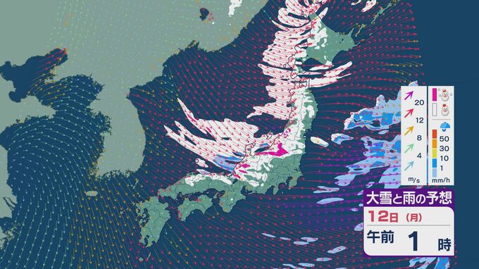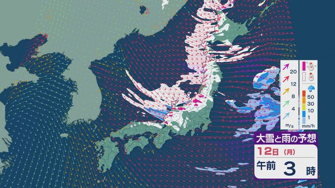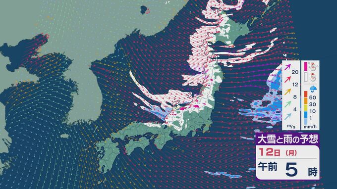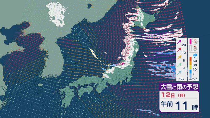 【大雪情報】11日(日)は強い冬型に 大雪をもたらす「JPCZ」が発生し東北日本海側に その後は南下し北陸にも影響のおそれ 3連休は交通障害などに注意・警戒を雪・雨と風シミュレーション 北陸放送 2026年1月9日(金) 18:37 国内 12日の成人の日は、午前中を中心に雪の降り方が強まるでしょう。東北の日本海側より北の地域では風の強い状態が続きそうです。