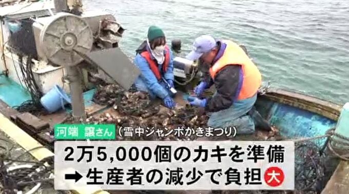「雪中ジャンボかきまつり」に向けて多い時には2万5000個のカキを準備してきましたが、生産者の減少で年々、イベントによる負担は大きくなっていたと話します。