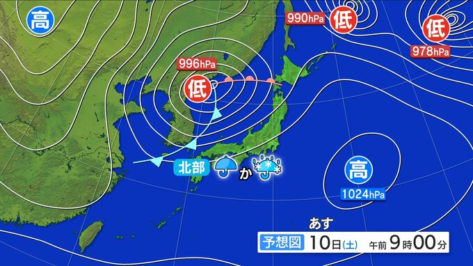 10日(土)日本海から前線近づき北部中心に雨やみぞれ