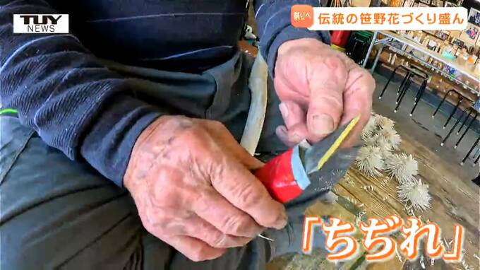 笹野一刀彫 六代目・戸田寒風さん「家庭繫栄と火伏の花で火事とか火傷しないようにと心を込めた笹野花なので、今でも縁起のいい花として買いに来てくださる」