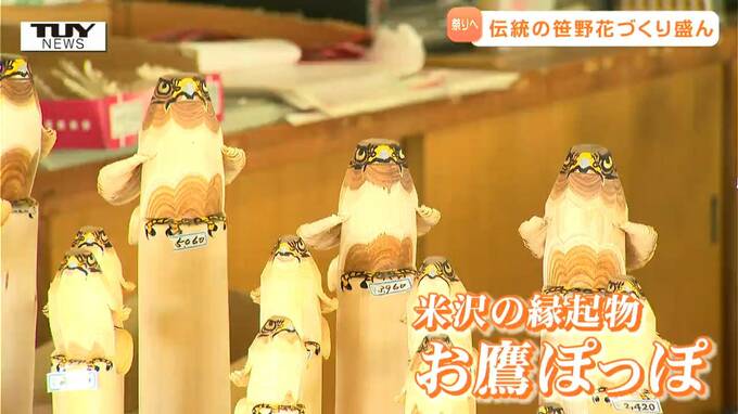 米沢の縁起物「お鷹ぽっぽ」や毎年の干支など様々な作品を手掛けながら冬場になると毎年250個ほどの笹野花が作られます。