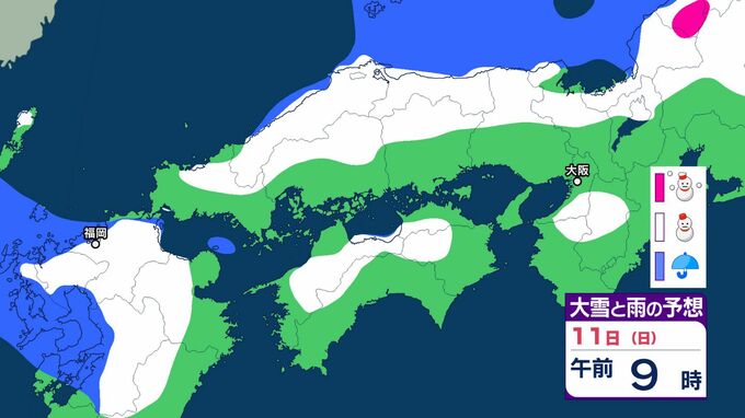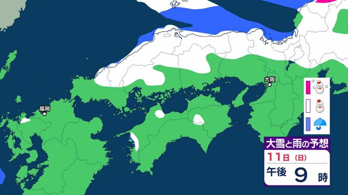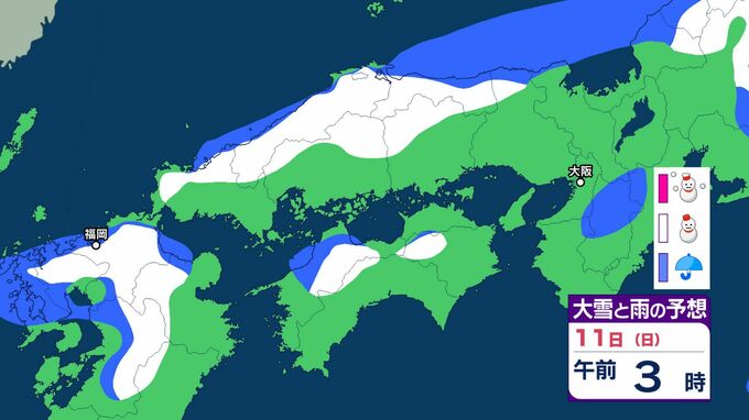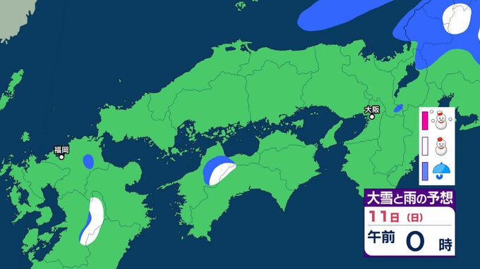 【大雪情報】四国地方は11日~12日頃にかけて山地を中心に大雪、平地でも大雪のおそれ 雪による交通機関への影響も注意【気象庁 雪雨シミレーション/9日午後8時更新】 RSK山陽放送 2026年1月9日(金) 20:00 国内 天気 11日(日)雪と雨のシミレーション 【画像⑪~⑱】は、11日(日)午前0時~午後9時までの3時間ごとの「雪と雨のシミュレーション」です。 【画像⑪】 【画像⑫】 【画像⑬】 【画像⑭】 【画像⑮】 【画像⑯】 【画像⑰】 【画像⑱】