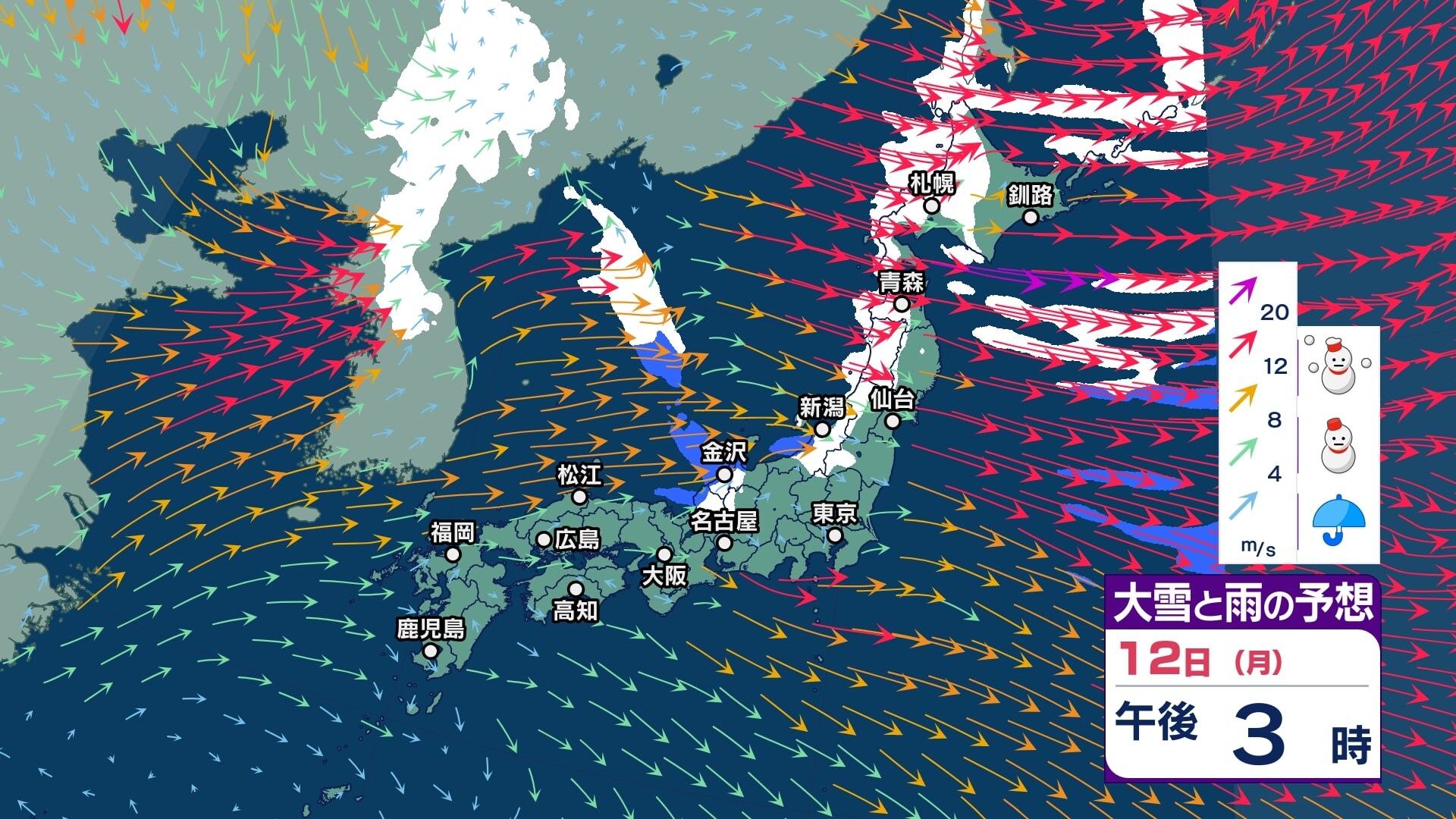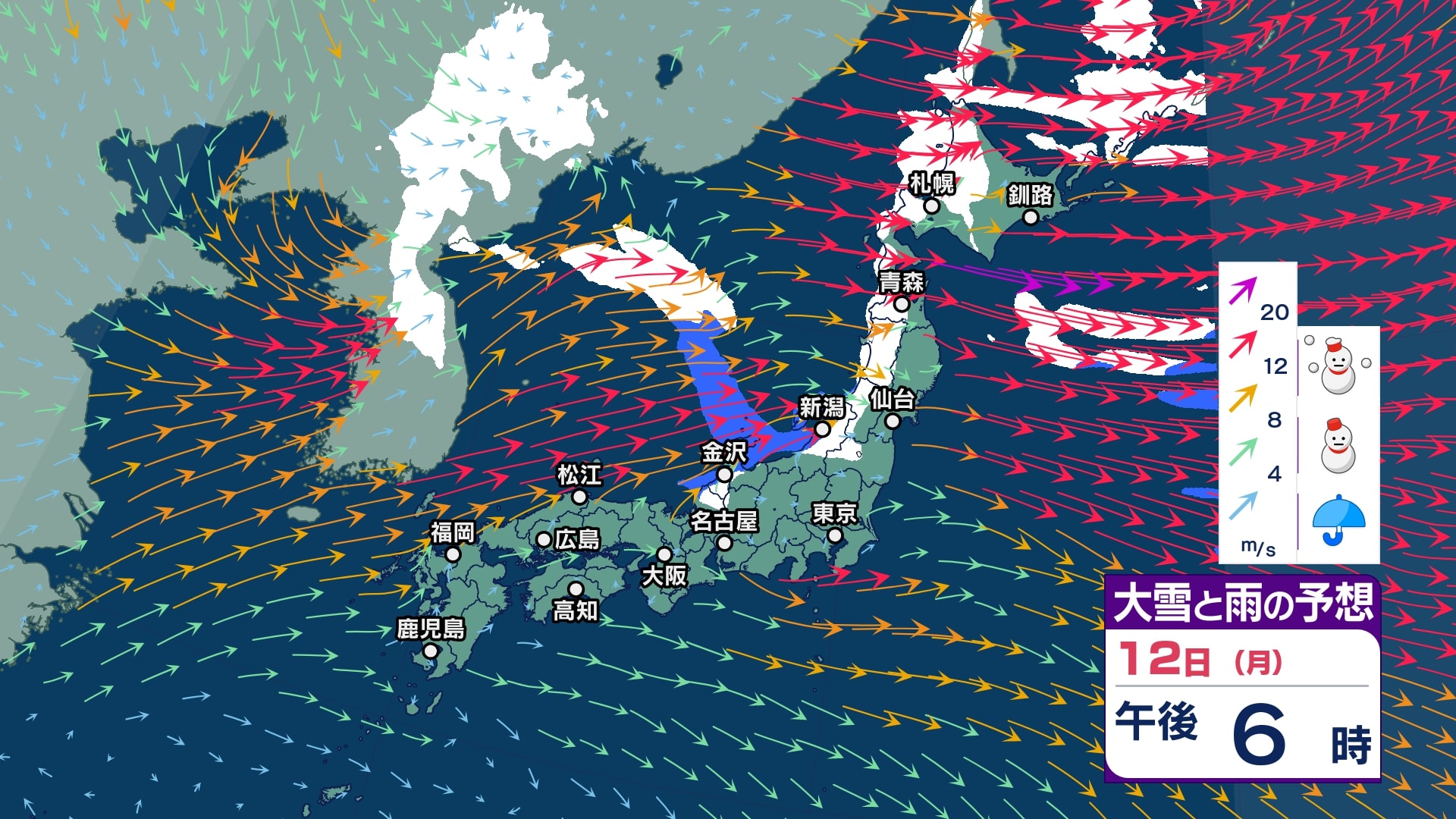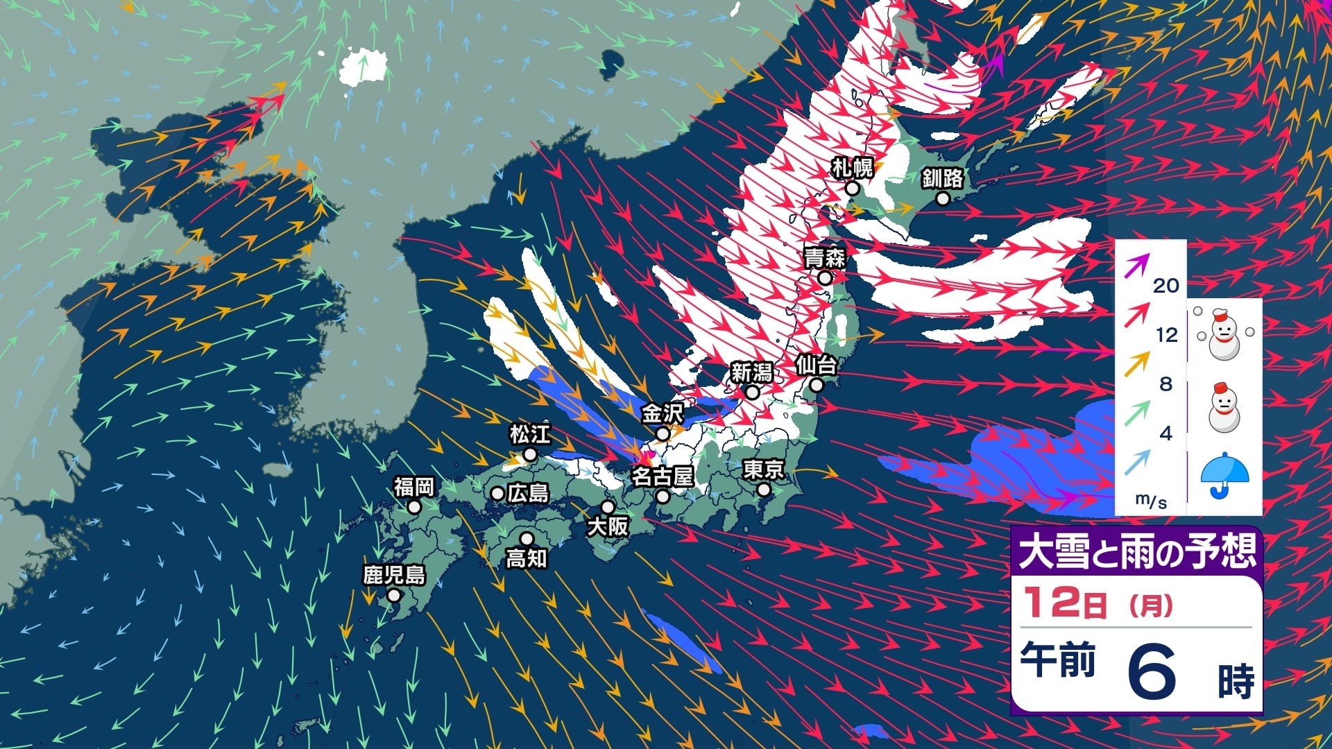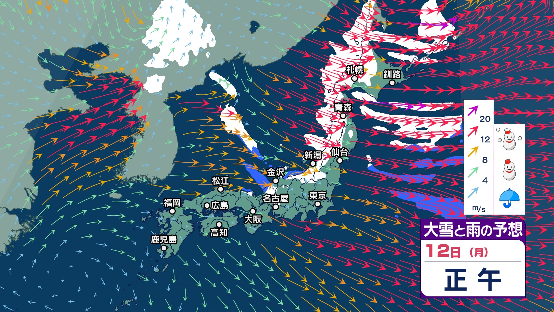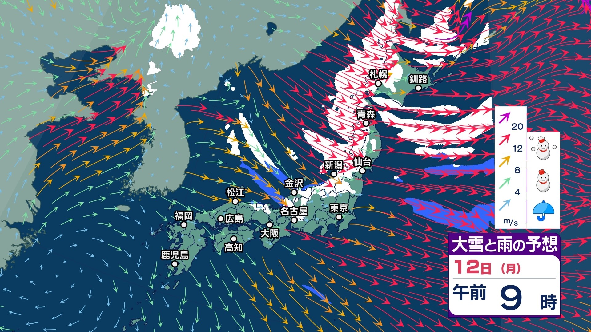 【大雪情報】中国地方は11日~12日頃にかけて大雪となる見込み 寒気が強いため普段雪の少ない山陽南部の平地でも大雪となるおそれ 警報級の大雪となる可能性も【大雪と雪のシミュレーション】 チューリップテレビ 2026年1月9日(金) 18:10 国内 天気 12日(月)大雪と雨シミュレーション