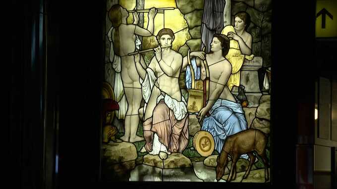 天神地下街といえば、石畳と天井のレリーフ、そして、ステンドグラス。