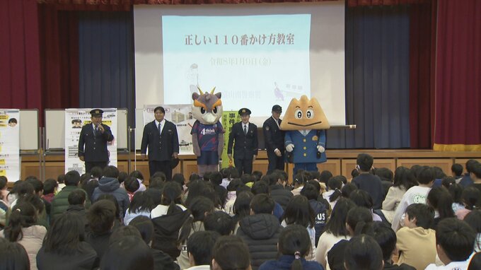 富山南警察署の警察官と一緒に「正しい110番のかけ方教室」をおこないました。