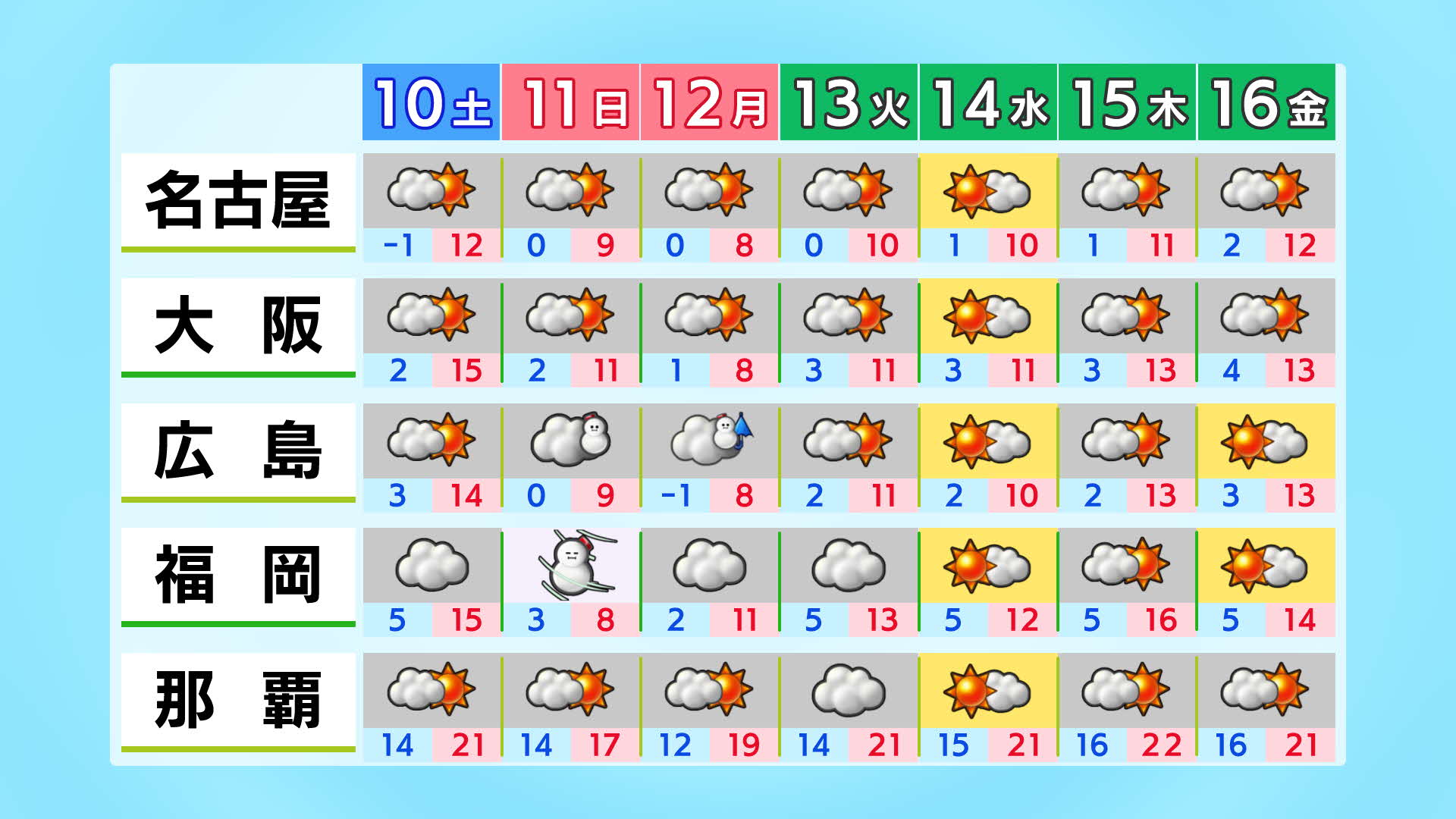このため、西日本から北日本の広い範囲で10日から12日頃にかけて、大荒れや大しけ、大雪となる所がある見込みです。
