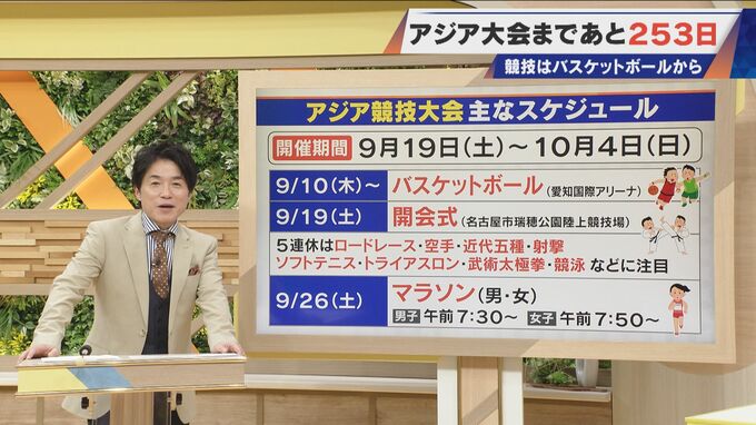 そして、注目は9月26日名古屋市内を駆け抜ける注目のマラソンです。9月26日のスタート時間を見てみると…男女が同じコースをほぼ同じ時間に走るんです。男子は午前7時半、女子は20分遅れて、午前7時50分のスタートです。沿道から盛り上げたいですね!