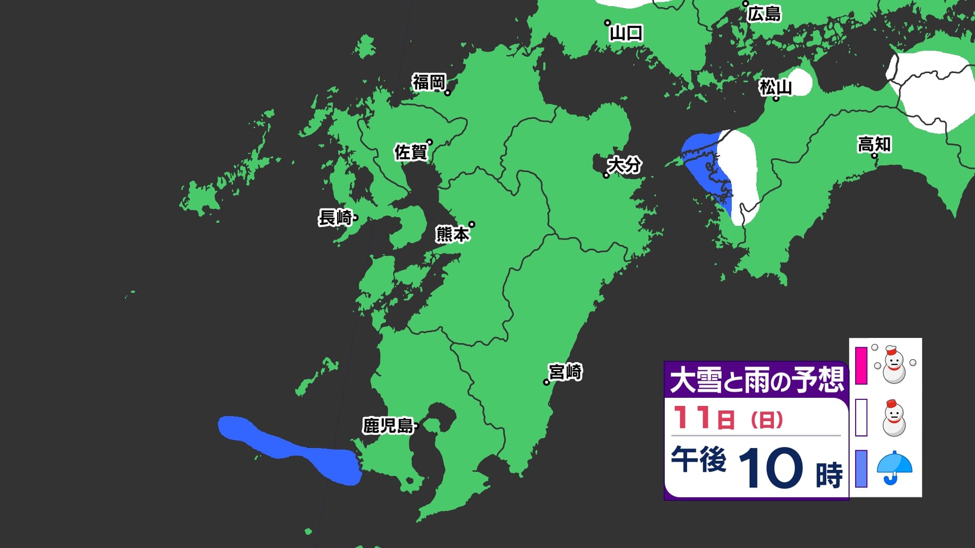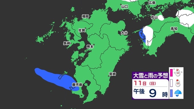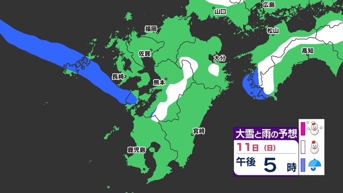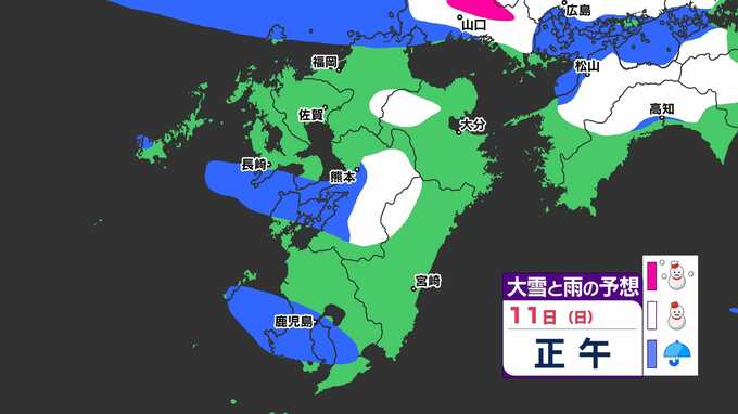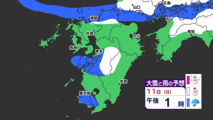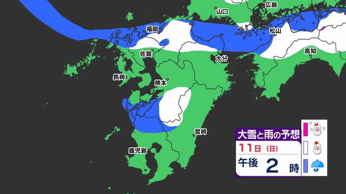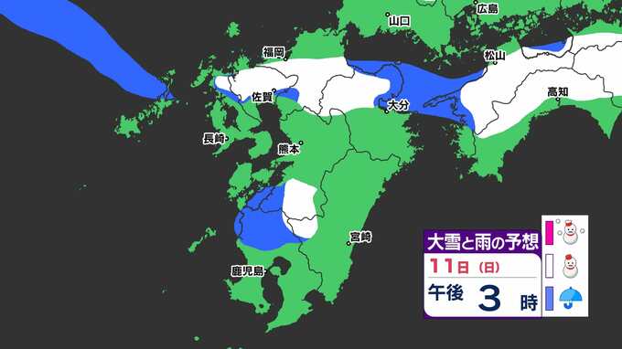 【大雪情報】福岡・佐賀・熊本13cm「三連休 積雪のおそれ」【雪シミュレーション 11日(日)/ 九州各都市の週間予報】福岡・佐賀・長崎・大分・熊本・宮崎・鹿児島 南日本放送 2026年1月9日(金) 20:00 国内 天気 この記事をはじめから → 3連休 九州大雪のおそれ「雪シミュレーション」
