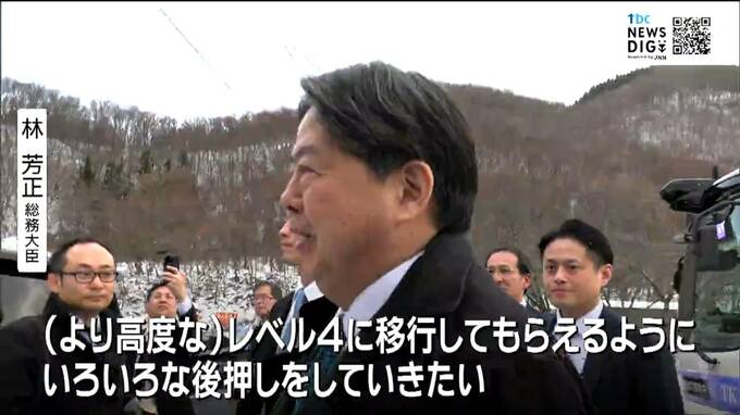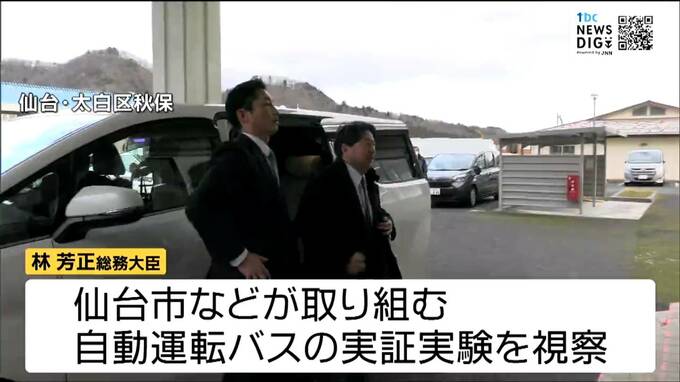 就任後初めて宮城県入りした林総務大臣は、まず太白区秋保地区で仙台市などが取り組んでいる自動運転バスの実証実験を視察しました。