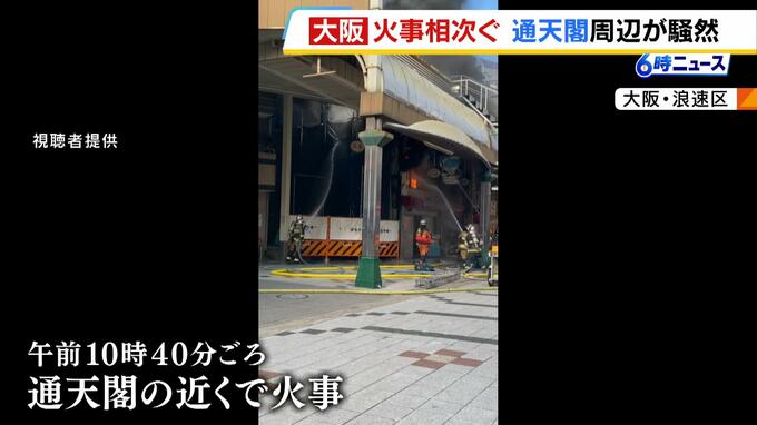 大阪市内で火事が相次ぎ、観光エリアの通天閣周辺は一時、騒然としました。 午前10時40分ごろ、大阪・浪速区にある通天閣近くの商店街で火事がありました。 警察などによりますと、火は約7時間半後に消し止…