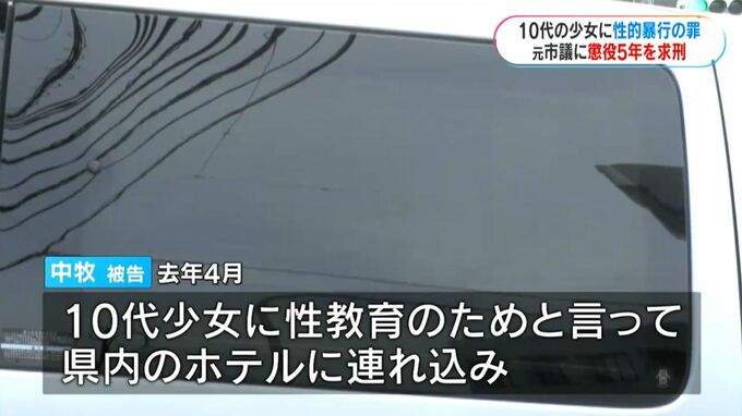 起訴状などによりますと中牧被告は去年4月、10代の少女を性教育のためと言って県内のホテルに連れ込み性的暴行を加えた罪に問われています。