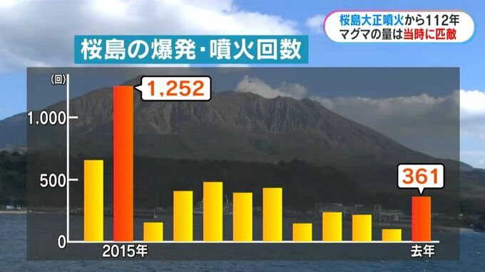 桜島の噴火は2015年に年間1000回を超えたものの、近年は100回から200回ほどで推移し、去年は361回でした。