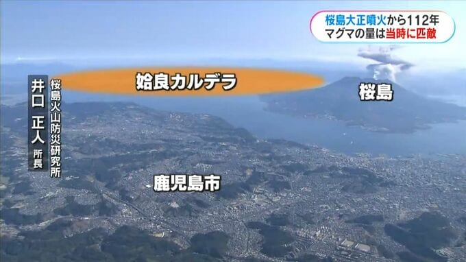 「大正噴火から112年の間に隆起を続けている、大正噴火に匹敵するぐらいのマグマは少なくとも(桜島に供給する)姶良カルデラの下に溜め込んでいるという評価」