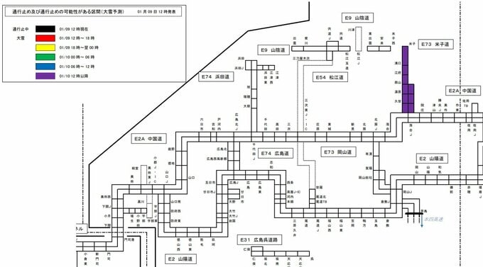 NEXCO西日本は、1月10日から12日にかけて、西日本の広範囲で降雪が予想されることから、関西・中国・四国地方の高速道路の一部区間で「予防的通行止め」を実施する可能性があると発表しています。
