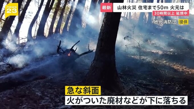 「切り株というか燃えた木が転がり落ちてしまって、枯れ葉に燃え広がって、傾斜が急なので、切り株がどんどん落ちてくる。転がって落ちてくるので、危ない状況でした」