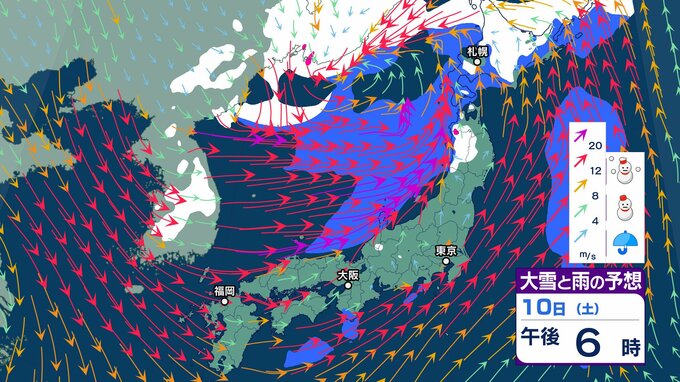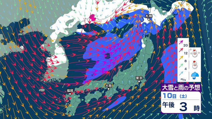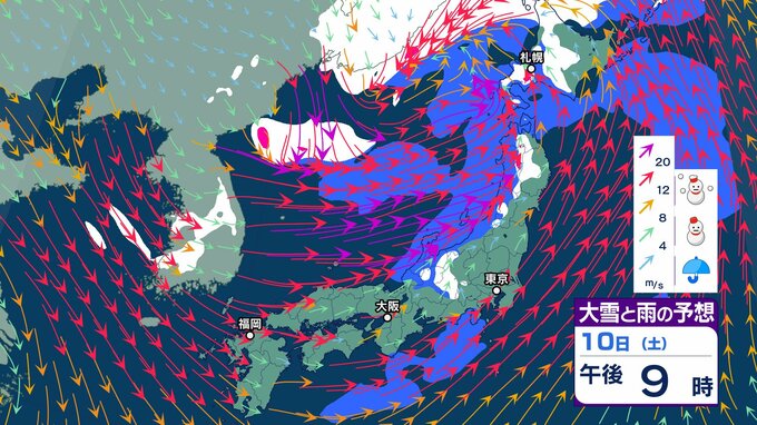 【大雪情報】強い冬型の気圧配置へ→12日にかけ全国的に大荒れ 降雪予想は東北、北陸、東海 80cm 近畿60cm 北海道、関東甲信、中国:50cm 車の運転は冬用タイヤ必須 立ち往生に備えを【気象庁雪風シミュレーション/11日】 11分前