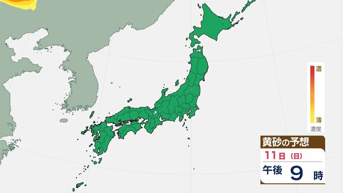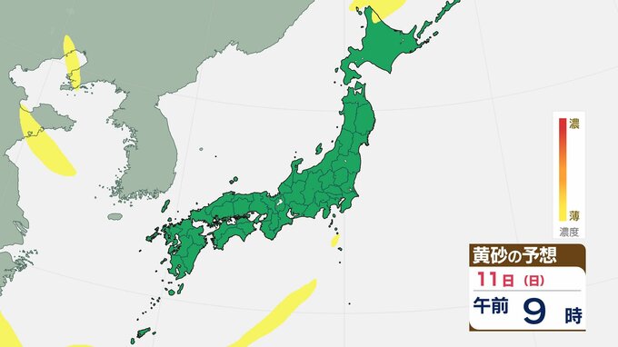 【黄砂情報】一旦落ち着くも 13日(火)から再び飛来の見込み 屋外の洗濯物やアレルギー対策などに注意 黄砂シミュレーション【気象庁 11日】 RSK山陽放送 2026年1月10日(土) 11:05 国内 天気 11日(日)の黄砂はどうなる? 10日(土)の黄砂のシミュレーションは、【画像②~】のとおりです。北海道などに飛来が予想されていますが、その後落ち着く見込みです。 【画像②】 【画像③】 【画像④】