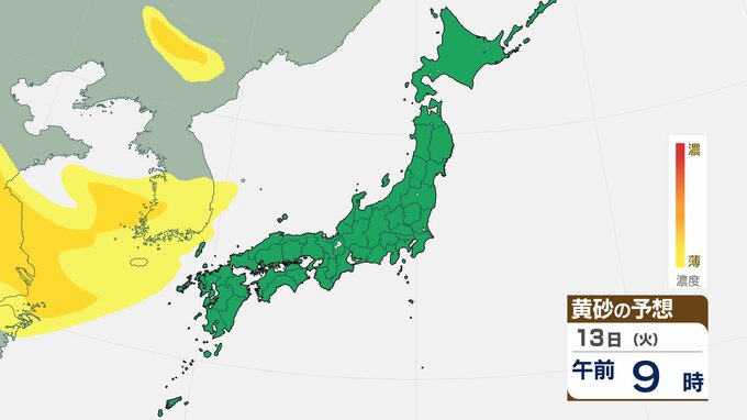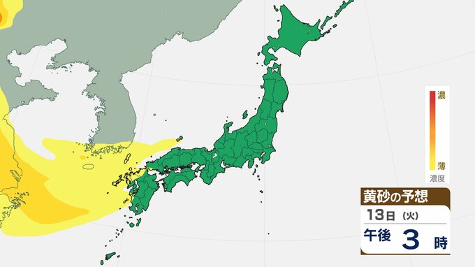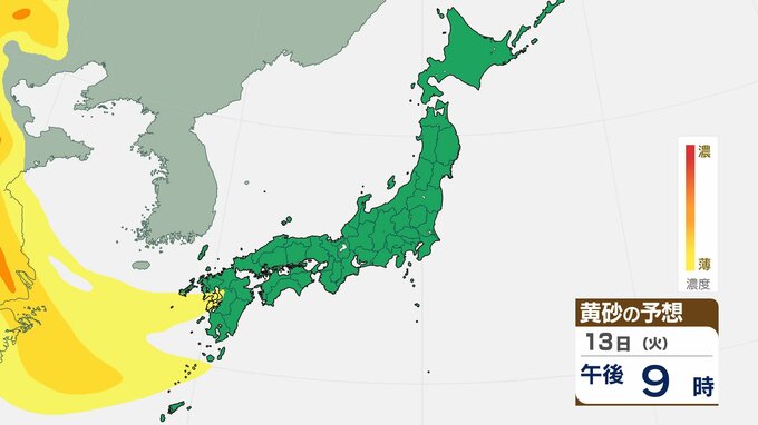 【黄砂情報】一旦落ち着くも 13日(火)から再び飛来の見込み 屋外の洗濯物やアレルギー対策などに注意 黄砂シミュレーション【気象庁 11日】 RSK山陽放送 2026年1月10日(土) 11:05 国内 天気 13日(火)の黄砂はどうなる? 13日(火)は九州地方に飛来する可能性があります。 【画像⑨】 【画像⑩】 【画像⑪】 【画像⑫】