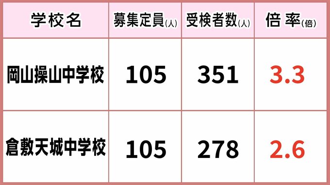 岡山操山・倉敷天城の受験者数は?
