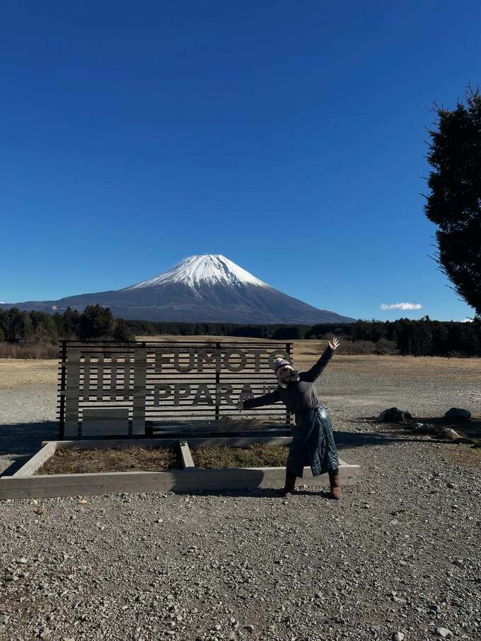 渡瀬さんは「2026年初デイキャン」とテキストして、真っ青な空の向こうにそびえる富士山をバックに、両腕を上げてジャンプする写真を投稿しました。