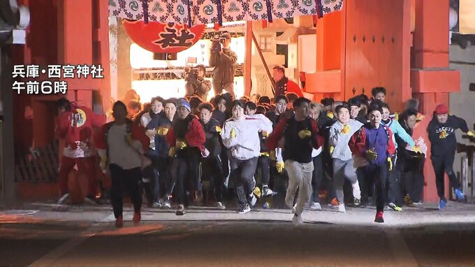 商売繁盛の神様、えびす神社の総本社、兵庫県の西宮神社で、本殿への一番乗りを目指して走り抜ける恒例の「福男選び」が行われました。 抽選で選ばれた108人を先頭に6500人が勢いよく飛び出します。西宮神…