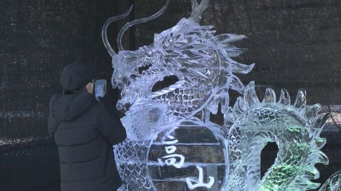 大小さまざまな氷の彫刻を展示する「氷と灯りの祭典」が、岐阜県高山市で始まりました。