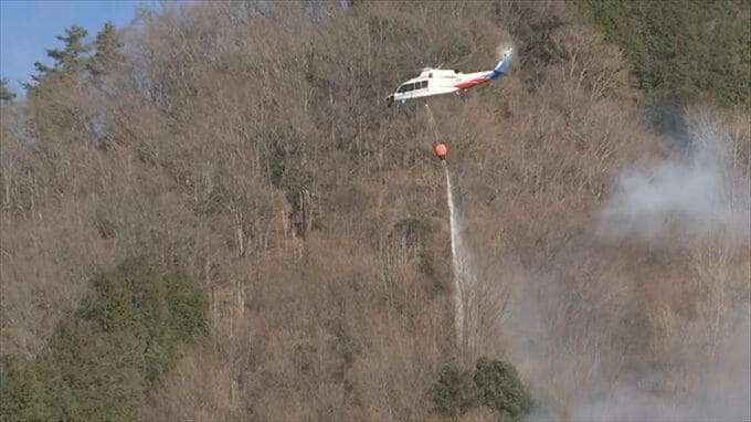 【LIVE画像あり】山林火災延焼続く 火は最も近い住宅まで約50メートル ヘリコプターなどで消火活動再開 山梨・上野原市 テレビ山梨 2026年1月10日(土) 13:00 国内 10日は、午前8時ごろから消火活動を再開し、山梨や東京の消防、自衛隊のヘリコプターなどが消火活動にあたっています。