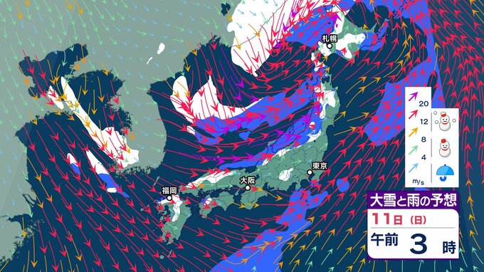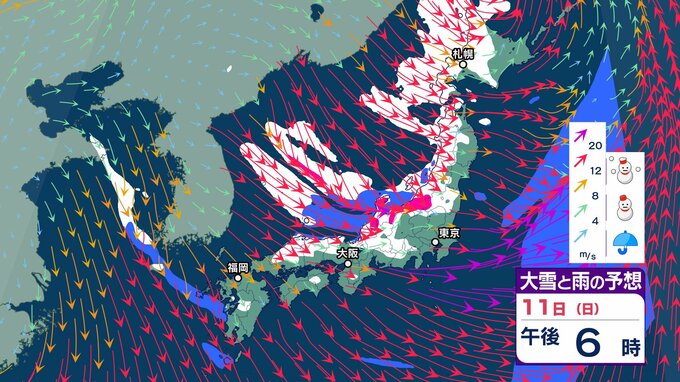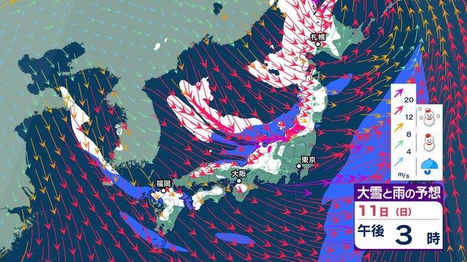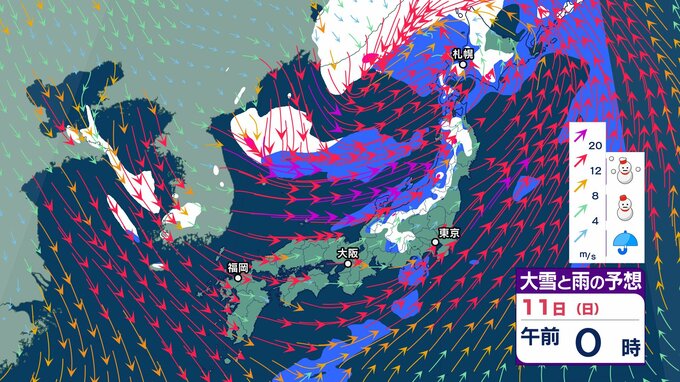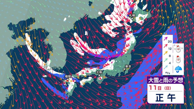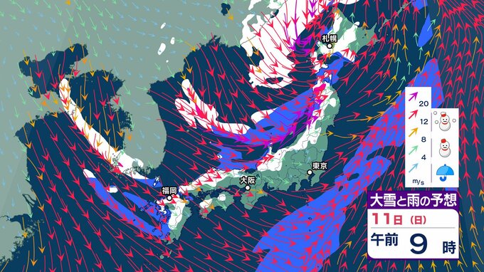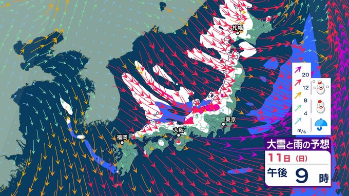 【大雪情報】強い冬型の気圧配置へ→12日にかけ全国的に大荒れ 降雪予想は東北、北陸、東海 80cm 近畿60cm 北海道、関東甲信、中国:50cm 車の運転は冬用タイヤ必須 立ち往生に備えを【気象庁雪風シミュレーション/11日正午更新】 8時間前