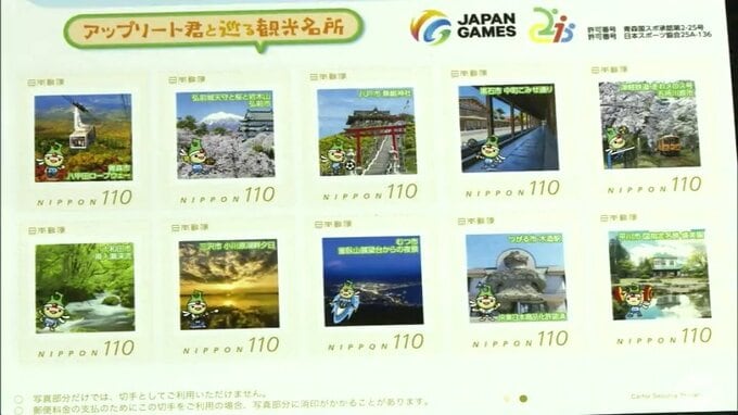あおもり国スポと障スポを盛り上げる切手が販売されています。フレーム切手には、県内10市の観光名所などがデザインされています。8日は日本郵便東北支社の斎藤貴支社長が宮下宗一郎知事に切手を贈呈しました。青…