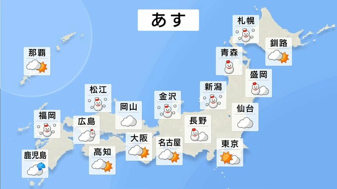 日本海側を中心に大雪や猛吹雪となりそうです。特に午後は大雪のピークとなり、積雪が急増するでしょう。東北の山沿いの多い所では、一気に1メートル近く積雪が増えるおそれがあります。西日本や北日本は、太平洋側でも大雪のおそれがあるため、車の運転に注意が必要です。関東は平野部は晴れますが、北部山沿いは大雪となる見込みです。