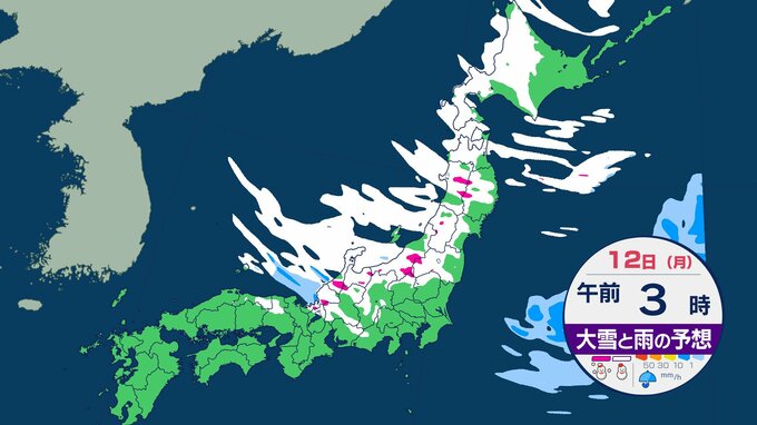 【北~西日本まで大雪警戒】3連休 11日午後にピーク “積雪急増” 日本海側を中心に大雪や猛吹雪に【大雪と雨のシミュレーション10日午後7時~】 TBSテレビ 2026年1月10日(土) 18:12 国内 天気 【12日午前0時~ 大雪と雨のシミュレーション】
