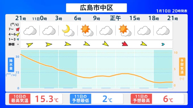 【大雪情報】12日(月)にかけて日本海側中心に大荒れ「 暴風雪・高波・大雪」に備えを 東北地方100㎝、関東甲信、近畿地方は50㎝の降雪予想 【気象庁 雪風シミュレーション/ 10日午後9時更新】 RSK山陽放送 2026年1月10日(土) 21:00 国内 天気 札幌・仙台・東京・名古屋・大阪・広島・福岡・那覇の天気予報 【画像】 【画像】 【画像】 【画像】 【画像】 【画像】 【画像】 【画像】 今後の気象情報に注意してください。 ▶11日(日)3時間ごと雪風シミュレーション画像