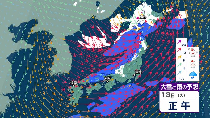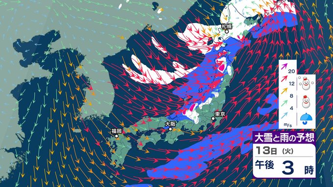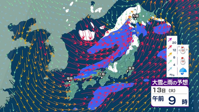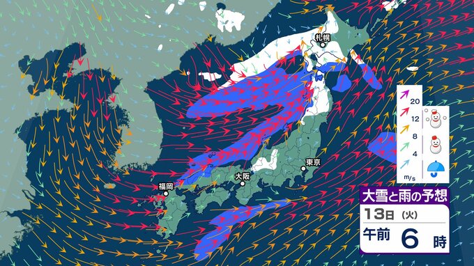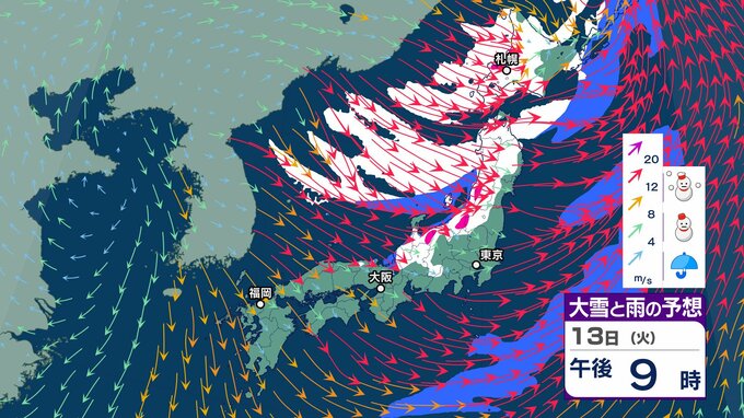 【大雪情報】強い冬型の気圧配置の影響 12日(月)にかけて北日本から西日本で大荒れ「暴風・猛吹雪・高波に警戒」 東北80㎝、北陸・東海70㎝の降雪予想 【気象庁 雪風シミュレーション/11日】 6時間前