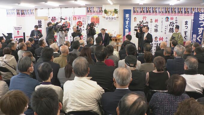 任期満了に伴い今年3月に行われる石川県知事選挙。出馬を表明している現職と新人の2人が10日、それぞれ金沢市内で事務所開きを行いました。