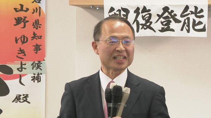 ソフトバンクの戦略顧問を務めた経験から、現地に滞在できる「能登知事室」の設置など被災者目線の県政運営を訴えました。家族や友人、支持者を中心に草の根の選挙を展開する山野氏、政党組織としては国民民主党県連が支持を決めています。