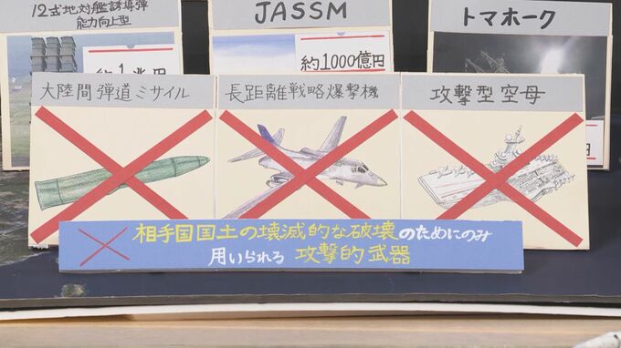 そもそも日本政府は、憲法9条のもとで持つことができる自衛隊の能力について、「自衛のための必要最小限度」と定めています。そのため防衛省は、例えば「大陸間弾道ミサイル」「長距離戦略爆撃機」「攻撃型の空母」などは「相手国国土の壊滅的な破壊のためにのみ用いられる攻撃的武器」だとして、保有できないとしています。