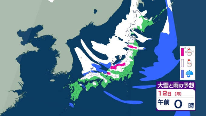 11日17時頃発表の各地の予報では、12日にかけて「一晩で景色が変わる」レベルの降雪が各地で予想されています。