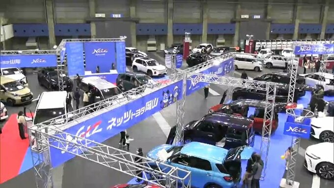 岡山県内のトヨタとダイハツのディーラーによる合同展示・商談会が岡山市北区で開かれています。