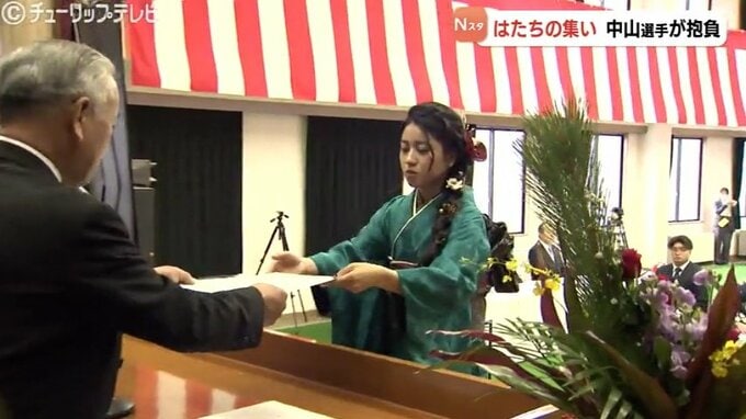 中山選手は幼馴染や恩師たちと再会し二十歳の節目に飛躍を誓いました。