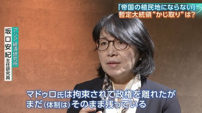 「マドゥロ氏は拘束されて政権を離れたが、まだ(体制は)そのまま残っている。民主主義のシンボルである彼ら(マチャド氏ら)が帰ってきたとしても、(体制側と)交渉できるはずがない。まずは地ならしとして、ロドリゲス氏の方が交渉できるというところで、白羽の矢が立った」