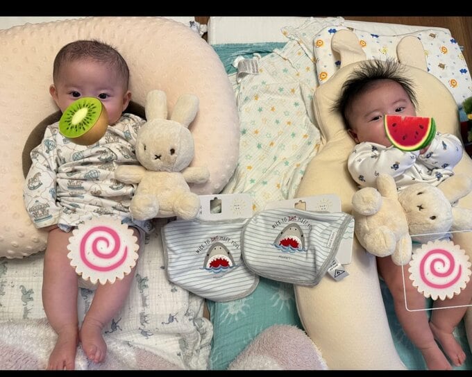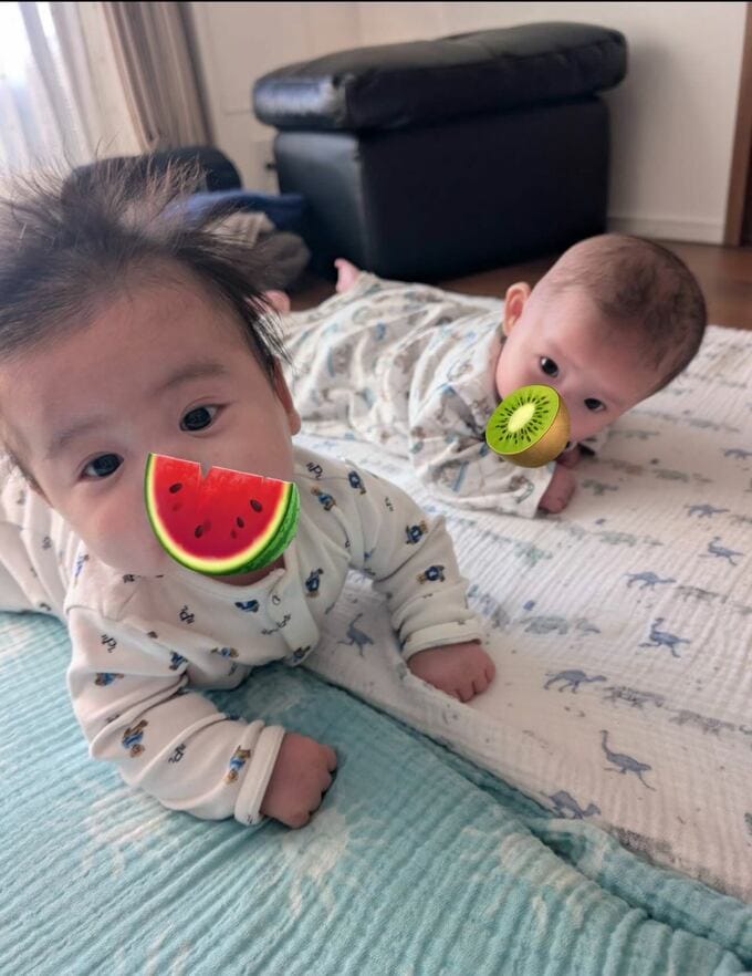 中川さんは、「二人とも首が据わってくれて成長を感じます!うう、うれしい」と、順調な成長に喜びの言葉を綴っています。