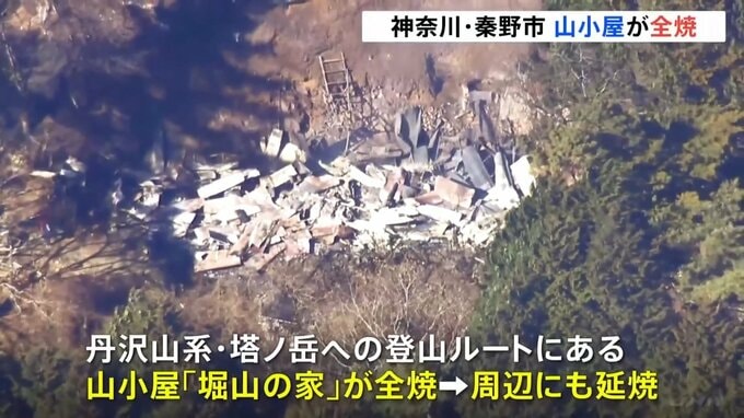 消防などによりますと、丹沢山系の塔ノ岳への登山ルートにある「堀山の家」という山小屋が全焼し、周辺にも燃え移っているということです。