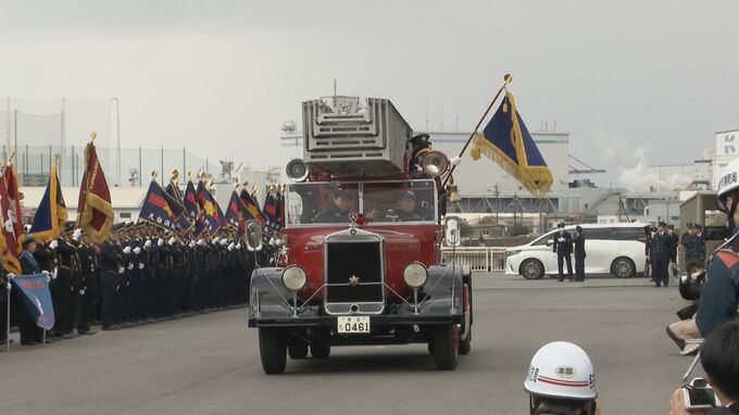 新年恒例の「名古屋市消防出初め式」が行われ、日本で最も古い「はしご車」がお披露目されました。