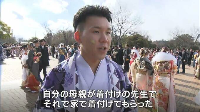 「自分の母親が着付けの先生で、それで家で着付けてもらった。普段ありがとうとか照れくさくて言えないんですけど、そういうことをきょうを機会に口に出来たらなと思います」