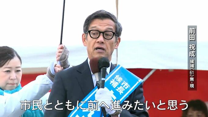 (前田祝成候補(61)無・現(2))「枕崎という船は動き出している。その動きの、動いている船を止めるわけにはいかない。市民とともに前へ進みたいと思う」