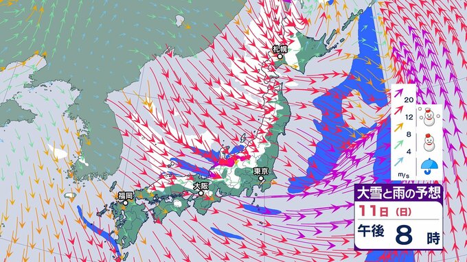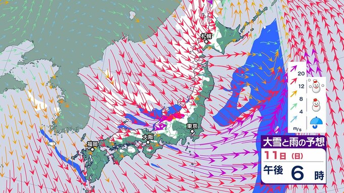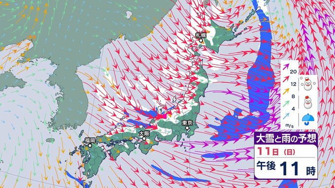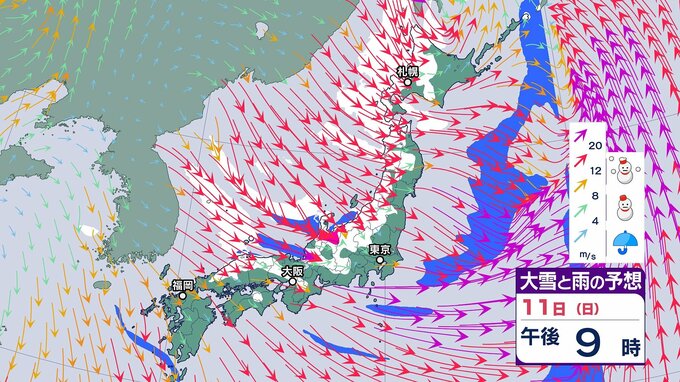 【大雪情報】24時間降雪量80センチ・最大瞬間風速35メートルの予想…12日にかけ全国的に大荒れに 大雪・猛ふぶき・交通障害などに警戒を[全国の1時間ごとの暴風雪のシミュレーションを見る](気象庁) テレビ山口 2026年1月11日(日) 17:37 国内 12日(月)午前0時までの暴風雪のシミュレーション